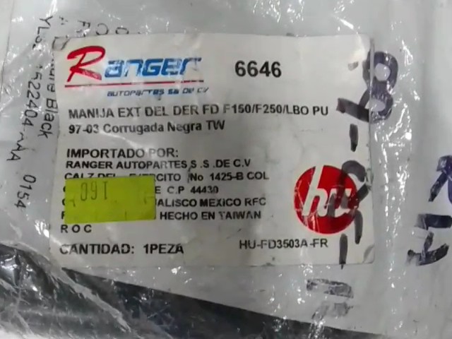 MANIJA EXT DEL DER FD F150 F250 LBO PU 97-03 CORRUGADA NEGRA TW 6646 HU-FD3503A-FR RH
